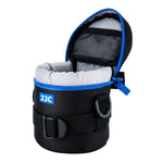 La bolsa para lentes JJC Deluxe está diseñada para transportar una lente SLR típica. Esta bolsa está fabricada en poliéster resistente con un interior acolchado de espuma. Proporciona una gran protección y absorción de impactos para su lente. Además, su material exterior es resistente al agua, lo que puede proteger su lente de la lluvia y la humedad. Tiene una cremallera bidireccional de color azul intenso con un bolsillo de malla para accesorios dentro de la tapa. Los dos controles deslizantes de la cremallera están diseñados con pequeños bucles, por lo que puede bloquearlos con un pequeño candado por seguridad. Puede guardar el accesorio pequeño, como la tapa del objetivo o el control remoto, en el bolsillo interior. Cuenta con 4 opciones de transporte: 2 anillos en D con una correa para usar como correa para el hombro, 2 presillas con ojales entretejidos para una correa para el hombro, presilla para cinturón trasera de doble toque para usar en el cinturón y un asa de agarre en la parte superior para mayor comodidad. Además, la presilla trasera estrecha para cinturón de doble toque también se adapta al cinturón Lowepro. La cremallera de color azul intenso combina con el logotipo de JJC, lo que hace que la bolsa esté a la moda. Esta serie de fundas para lentes está disponible en diferentes tamaños para adaptarse a una amplia variedad de lentes. La bolsa para lentes JJC DLP-7II no solo se adapta a lentes selectos, sino que también se adapta al altavoz Bluetooth portátil JBL Xtreme.