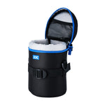 La bolsa para lentes JJC Deluxe está diseñada para transportar una lente SLR típica. Esta bolsa está fabricada en poliéster resistente con un interior acolchado de espuma. Proporciona una gran protección y absorción de impactos para su lente. Además, su material exterior es resistente al agua, lo que puede proteger su lente de la lluvia y la humedad. Tiene una cremallera bidireccional de color azul intenso con un bolsillo de malla para accesorios dentro de la tapa. Los dos controles deslizantes de la cremallera están diseñados con pequeños bucles, por lo que puede bloquearlos con un pequeño candado por seguridad. Puede guardar el accesorio pequeño, como la tapa del objetivo o el control remoto, en el bolsillo interior. Cuenta con 4 opciones de transporte: 2 anillos en D con una correa para usar como correa para el hombro, 2 presillas con ojales entretejidos para una correa para el hombro, presilla para cinturón trasera de doble toque para usar en el cinturón y un asa de agarre en la parte superior para mayor comodidad. Además, la presilla trasera estrecha para cinturón de doble toque también se adapta al cinturón Lowepro. La cremallera de color azul intenso combina con el logotipo de JJC, lo que hace que la bolsa esté a la moda. Esta serie de fundas para lentes está disponible en diferentes tamaños para adaptarse a una amplia variedad de lentes. La bolsa para lentes JJC DLP-7II no solo se adapta a lentes selectos, sino que también se adapta al altavoz Bluetooth portátil JBL Xtreme.