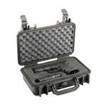 El estuche Pelican 1170 con espuma (negro) está diseñado para transportar un dispositivo electrónico portátil que requiere protección contra golpes. Es una carcasa de copolímero de impacto ultraalto hermética, a prueba de golpes y polvo con un núcleo de celda abierta fuerte y liviano con un diseño de pared sólida. El interior tiene 1 capa base, una capa de espuma Pick N Pluck y una tapa de espuma enrollada. Tiene pestillos de doble tiro de fácil apertura, una válvula de ecualización de presión automática, un sello de junta tórica y herrajes de acero inoxidable. El estuche se transporta mediante un asa plegable de gran tamaño.
