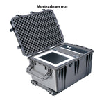 El estuche Pelican 1660 con espuma (negro) es un estuche rígido irrompible, hermético, hermético, a prueba de polvo, resistente a productos químicos y a la corrosión que se utiliza para transportar cualquier tipo de equipo que deba protegerse de los elementos. Está hecho de copolímero estructural de ultra alto impacto que lo hace extremadamente fuerte y duradero. Tiene una junta tórica de neopreno de 0.25", pestillos de ABS que sellan perfectamente e incluye una válvula de purga automática para una rápida ecualización después de cambios en la presión atmosférica.