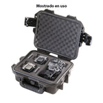 El estuche negro Pelican iM2050 Storm con espuma es un estuche moldeado por inyección hecho de resina HPX de alto rendimiento que es prácticamente irrompible y resistente a abolladuras y roturas. Es resistente, resistente, liviano, hermético y estanco. Hay una válvula Vortex conectada permanentemente que ajusta automáticamente la presión del aire sin dejar entrar agua y no se desenrosca de la carcasa. Los pestillos Press & Pull se abren con solo presionar un botón, pero permanecen cerrados de forma segura bajo impacto o estrés. El estuche tiene cerrojos moldeados prácticamente irrompibles que permiten agregar candados de tamaño estándar. Tiene bisagras con pies integrados que se sujetan firmemente en caso de impacto y crean una superficie plana para una estabilidad vertical. Se transporta mediante un mango de núcleo sólido, de agarre suave y de doble capa que proporciona una comodidad fuerte y duradera.