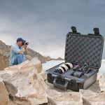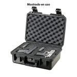 El estuche Pelican iM2200 Storm con espuma en negro es un estuche moldeado por inyección hecho de resina HPX de alto rendimiento, que es prácticamente irrompible y resistente a abolladuras y roturas. Es resistente, resistente, ligero, hermético y estanco. Hay una válvula Vortex conectada permanentemente que ajusta automáticamente la presión del aire sin dejar entrar agua y no se desenrosca de la carcasa. Los pestillos Press & Pull se abren con solo presionar un botón, pero permanecen cerrados de forma segura bajo impacto o estrés. El estuche tiene cerrojos moldeados irrompibles que permiten agregar candados de tamaño estándar. Tiene bisagras con pies integrados que se sujetan firmemente en caso de impacto y crean una superficie plana para una estabilidad vertical. Se transporta mediante un mango de núcleo sólido, de agarre suave y de doble capa que proporciona una comodidad fuerte y duradera.