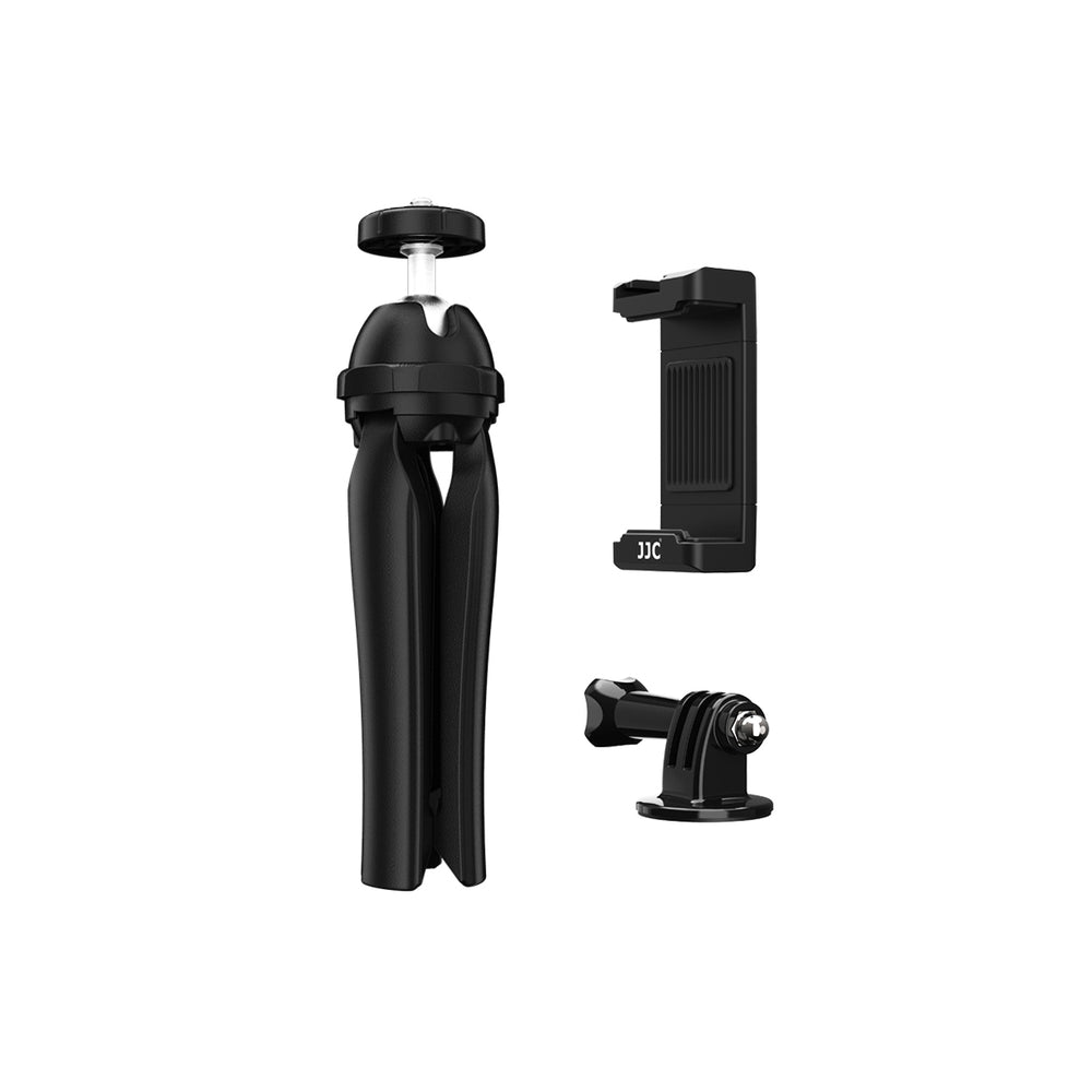 El kit de mini trípode JJC TP-MT1K SILVER está especialmente diseñado para cámaras sin espejo, DSLR de nivel básico, cámaras compactas, cámaras de acción y teléfonos inteligentes. Contiene 3 elementos: un mini trípode, un clip para teléfono inteligente y un adaptador de montaje para trípode para cámaras de acción. Estos artículos se convertirán en buenos compañeros para sus fotografías de retratos o paisajes.