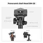 La cabeza de bola panorámica de centro de gravedad bajo permite rotaciones suaves y precisas en 360°, facilitando tomas horizontales, verticales y panorámicas. Su estructura de metal de alta durabilidad asegura movimientos firmes y sin vibraciones, ideal para quienes buscan control absoluto sobre el encuadre. Ya sea con cámara o celular, podrás capturar desde videos dinámicos hasta fotos perfectamente alineadas.
