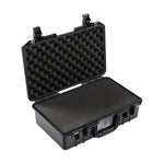 Esta versión del estuche rígido de transporte Pelican 1485AirWF negro está diseñada para que usted maximice su espacio disponible y al mismo tiempo brinde protección personalizada para su valioso equipo. Obtiene el estuche 1485 con un inserto de espuma Pick-N-Pluck completo con un inserto de tapa de espuma enrollado y una capa base gruesa.