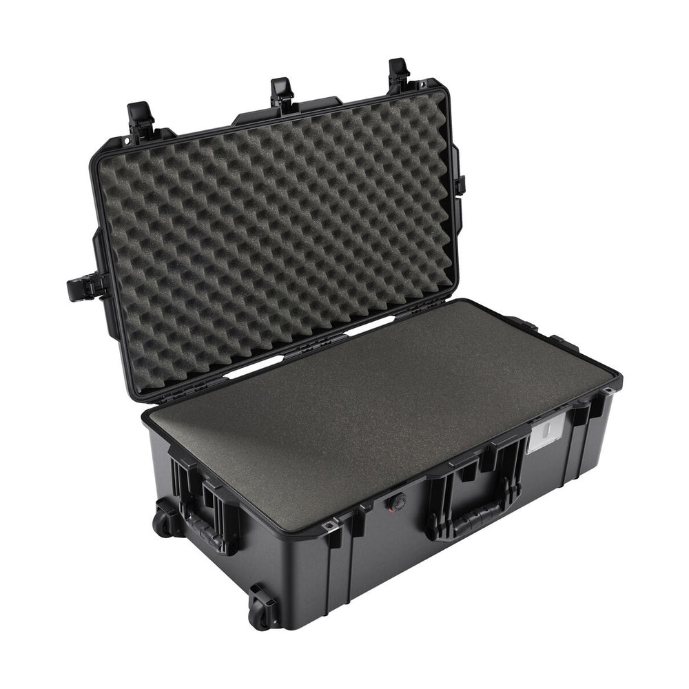 Esta versión del estuche rígido con ruedas Pelican 1615AirWF negro está diseñada para que usted maximice su espacio disponible y al mismo tiempo brinde protección personalizada para su valioso equipo. Obtiene el estuche 1615 forrado con dos capas de espuma Pick-N-Pluck que le permiten personalizar el interior según su equipo específico, además de una capa base inferior y un inserto de tapa de espuma enrevesado que garantizan que todo esté completamente protegido.