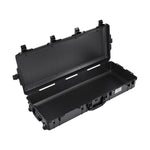 El estuche rígido largo con ruedas 1745AirNF impermeable en negro de Pelican es un estuche rígido a prueba de golpes hecho de polímero HPX2 liviano que protegerá y almacenará equipos sensibles. El estuche se asegura con un sistema de cierre de botón actualizado que utiliza fuerza de compresión para cerrar firmemente el estuche en tres lados. Esta edición del 1745Air viene vacía sin un inserto para brindarle acceso completo al interior para soluciones de almacenamiento personalizadas. Un inserto de espuma está disponible por separado si lo necesita más adelante. Lleve su estuche usando una o más de las tres manijas sobremoldeadas o, si es demasiado pesado, simplemente remolquelo detrás de usted sobre sus dos ruedas de perfil bajo y funcionamiento silencioso.