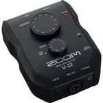 El U-22 cuenta con un preamplificador de micrófono de bajo ruido con alimentación fantasma conmutable y un conector combinado XLR de 1/4", lo que le permite manejar un micrófono dinámico, un micrófono de condensador o un instrumento de alta impedancia, como una guitarra o un bajo. También dispone de una entrada minijack de 3.5mm para grabar una entrada de línea estéreo a través de un iPad, una mesa de mezclas u otro dispositivo de audio portátil conectado. Gracias a la monitorización directa de latencia cero, las salidas principales RCA y un puerto para auriculares de 3.5mm, el U-22 puede alimentar simultáneamente altavoces y auriculares.