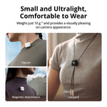 ● Para una experiencia verdaderamente inalámbrica, conecta cómodamente cada transmisor a cualquier prenda mediante el clip trasero integrado, sin necesidad de cables. Otras opciones de uso incluyen un enganche magnético y un cordón con accesorios disponibles por separado.
