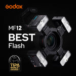 Diseñado para fotografías de primeros planos, el kit de 2 luces Macro Flash MF12 de Godox facilita la fotografía macro. Los cabezales del flash le permiten tomar fotografías hermosas y nítidas de sujetos pequeños como plantas, animales e insectos a una distancia extremadamente cercana. Los cabezales de flash MF12 se pueden montar en los soportes de flash incluidos y cuentan con cabezales ajustables para un posicionamiento rápido. Para mayor versatilidad, los flashes se pueden montar directamente en una lente mediante los anillos adaptadores incluidos y el anillo de montaje que le permite montar hasta seis cabezales de flash MF12. También se incluye un adaptador de posicionamiento para primeros planos extremos con una estructura inclinada especialmente diseñada que le permite inclinar los cabezales del flash hacia adentro, hacia la lente, para fotografías de primeros planos extremos. Para uso dentro y fuera de la cámara, los cabezales de flash requieren un transmisor comprado por separado y son compatibles con Godox XPro, X1, X2 y otros disparadores de flash inalámbricos seleccionados para cámaras de marcas principales como Nikon, Sony, Canon, FUJIFIM, Olympus y Panasonic.