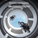 Filme de forma segura videos estables y estabilizados en 4K ultra gran angular en interiores o exteriores, dentro y alrededor de objetos, con el dron Avata Pro View Combo FPV con gafas DJI 2. Con lo que algunos llaman un diseño "cinewhoop", el Avata viene en un formato del tamaño de la palma de la mano. Factor de forma con las cuatro hélices protegidas con protectores adjuntos. Esto permite filmar primeros planos en interiores, cerca de personas y a través de pequeñas aberturas sin riesgo de daños o lesiones a personas o propiedades. Si el Avata entra en contacto, puede rebotar y seguir volando.