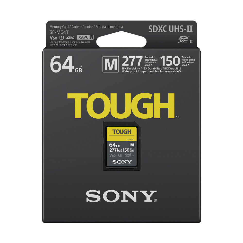 La tarjeta de memoria SDXC UHS-II SF-M Tough Series de 64GB de Sony cuenta con una capacidad de almacenamiento de 64GB y aprovecha el bus UHS-II para admitir funciones DSLR avanzadas, como ráfagas de obturador continuo y disparo rápido, así como raw y JPEG. capturas. Esta tarjeta también es adecuada para la captura de vídeo, incluidos vídeos 4K, Full HD y 3D. Puede alcanzar velocidades máximas de lectura de hasta 277 MB/s y velocidades máximas de escritura de hasta 150 MB/s. Gracias a su clasificación de clase de velocidad V60, se garantiza que las velocidades mínimas de escritura no caerán por debajo de 60 MB/s.