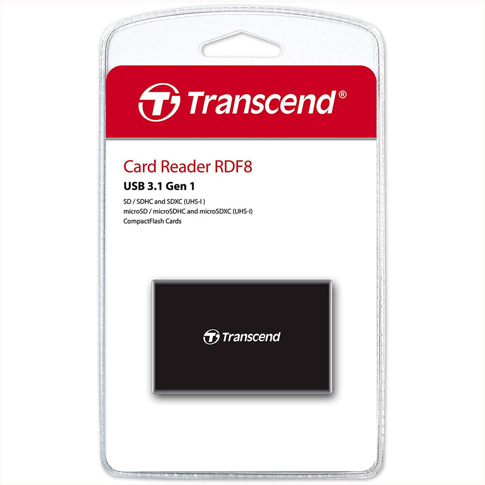 Transcend TS-RDF8K2 Características clave ● Admite tarjetas SD/SDHC/SDXC● Admite tarjetas microSD/SDHC/SDXC● Admite tarjetas CompactFlash● Admite estándares UHS-I y UDMA 7● Interfaz Micro-USB 3.1 Gen 1● Indicadores LED que muestran la...