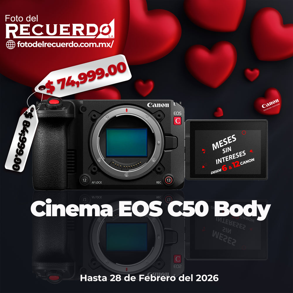 Canon 7034C002AA Canon Cinema EOS C50 Características clave: ● Sensor CMOS retroiluminado 7K FF● 7K 3:2 Open Gate, UHD 4K120, 2K180● ISO de doble base: 800 y 6400● Salida HDMI...
