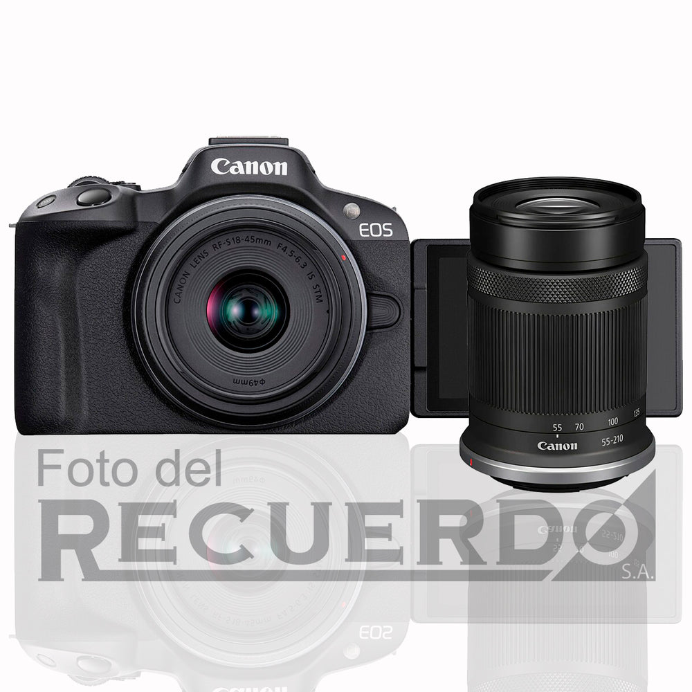 Combinando un sofisticado cuerpo de cámara con dos lentes versátiles, la cámara sin espejo Canon EOS R50 con lentes de 18-45mm y 55-210mm combina la cámara multimedia sin espejo negra con el lente de zoom estándar RF-S 18-45mm f/4.5-6.3 IS STM y el teleobjetivo con zoom RF-S 55-210mm f/5-7.1 IS STM.