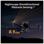 Un total de seis sensores ojo de pez de alto rendimiento con poca luz proporcionan una sensibilidad de 0.1 lux para la detección omnidireccional de obstáculos, lo que facilita la grabación nocturna segura. Los procesadores duales contribuyen a una alta resolución que permite evitar obstáculos a velocidades de hasta 64 km/h en condiciones de poca luz, como la iluminación de las calles. Este sistema visual garantiza un posicionamiento preciso en lugares prácticamente oscuros y con poca señal de satélite. Si la luz cae por debajo de 0.1 lux, el LiDAR frontal del Mavic 4 Pro puede detectar obstáculos para frenar rápidamente y evitar colisiones.
