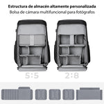 K&F KF13.128V4 Características clave● Compartimento principal de 25 litros con capacidad para 2 cuerpos DSLR y 4 lentes● Almacenamiento para computadora portátil o tableta en el compartimento acolchado antirrobo con...
