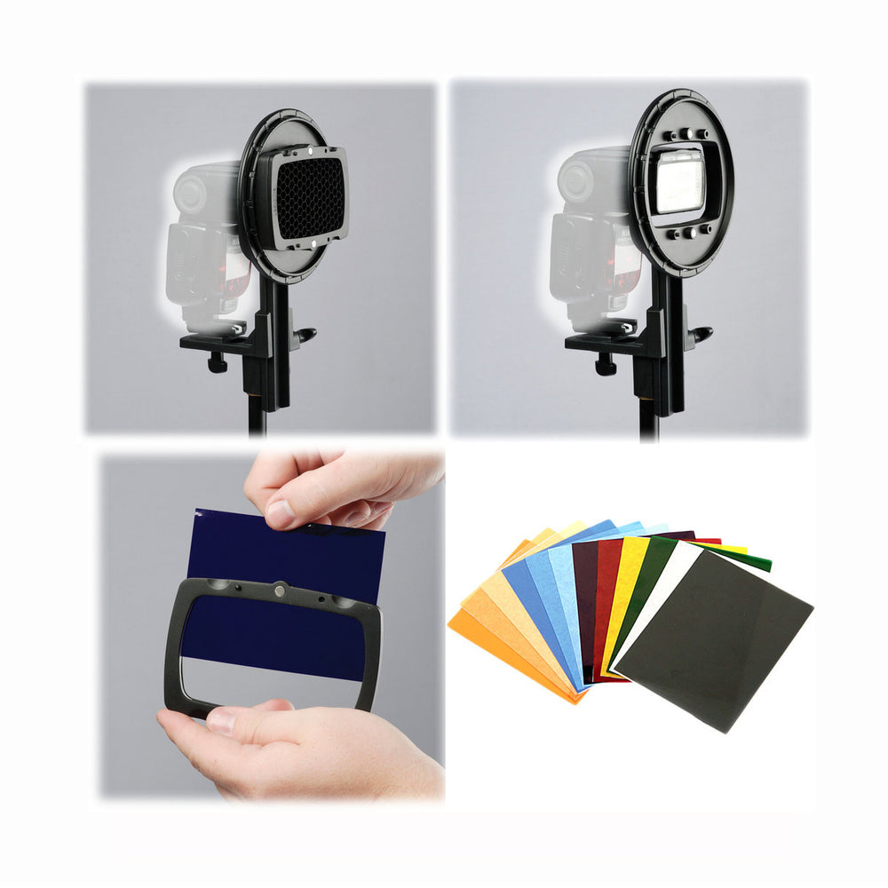 Lastolita 4200079 Características clave● Adaptador Ezybox con placa● Geles CTO, CTB, ND● Gel de difusión y soporte para gel.● 2- Rejillas de panalLastolite LL LS2610 Descripción generalEl Lastolite Strobo Kit...