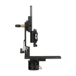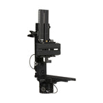 El soporte vertical del 303SPH se puede desbloquear y girar 90° (luego volver a bloquearlo) para que el cabezal ocupe menos espacio durante el transporte y para que los mecanismos de la placa deslizante estén protegidos contra golpes y sacudidas.