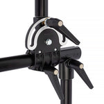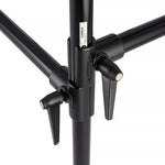 El marco para mesa de fotografía Manfrotto para bodegones, con acabado negro y sin panel de plexiglás, consta de secciones tubulares de aluminio que se unen para formar la base de la superficie de fotografía de plexiglás blanca translúcida, que se vende por separado. La distancia desde el suelo hasta la sección plana de la superficie de fotografía es de 83 cm y la altura, incluyendo la sección trasera ajustable, es de 193 cm. La mesa tiene una capacidad de carga de 15 kg. Incluye ruedas y otros accesorios.
