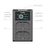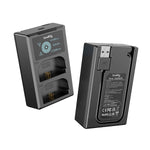 SmallRig 3821 Características clave ● Dos baterías de iones de litio de 2040 mAh● Cargador simultáneo con pantalla LCD● Cable USB-A integrado● Puerto de entrada USB-C Descripción general del SmallRig...
