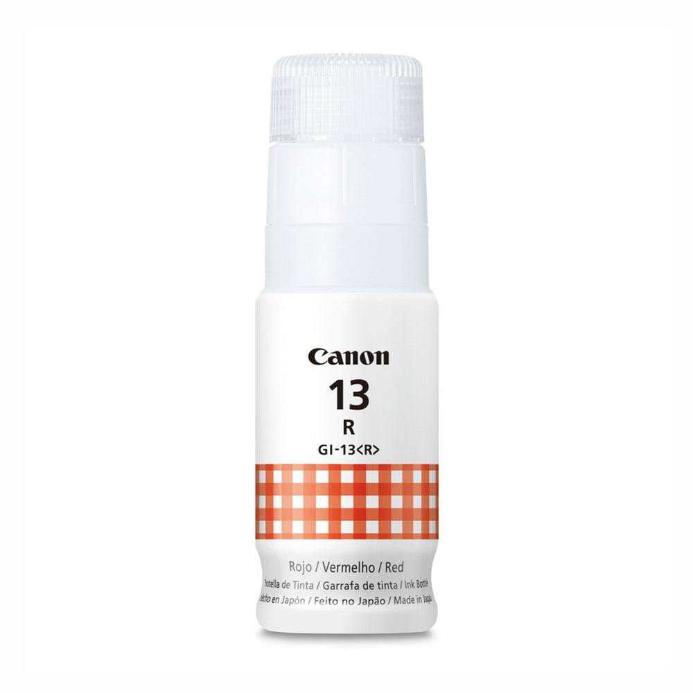 Canon 4713C001 Características clave● Tinta a base de colorantes● Forma con clave especializada por colorDescripción general de Canon GI-13La tinta roja GI-13 para impresoras PIXMA G610 y G510 de Canon...